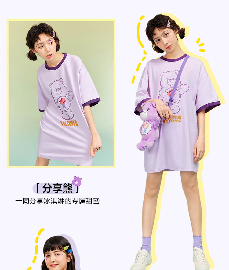 半小時前【愛心熊聯名】樂町可愛連衣裙2024早春少女心俏皮印花T卹連衣裙 - 套餐三 買2送2-NT$2299