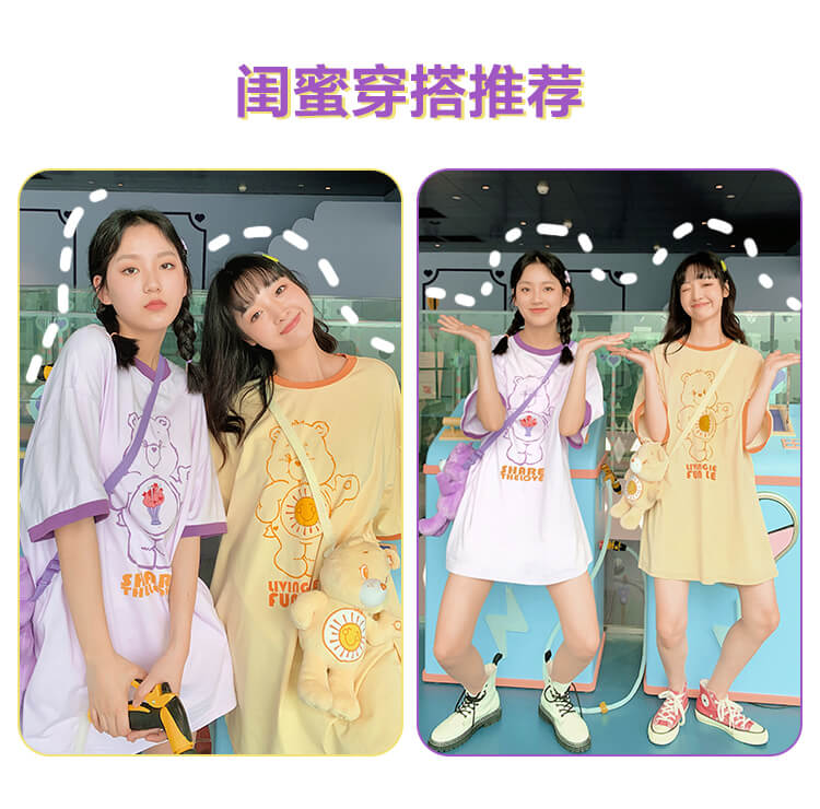 7分鐘前【愛心熊聯名】樂町可愛連衣裙2024早春少女心俏皮印花T卹連衣裙 - 套餐三 買2送2-NT$2299