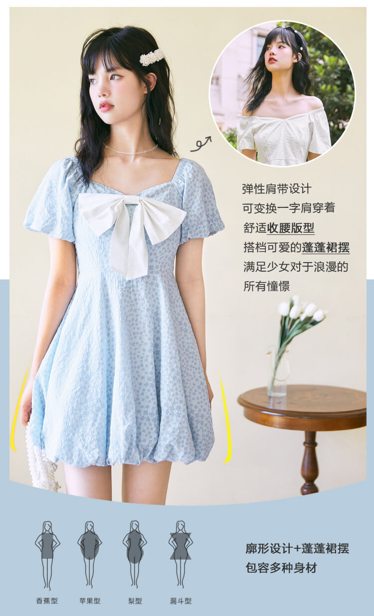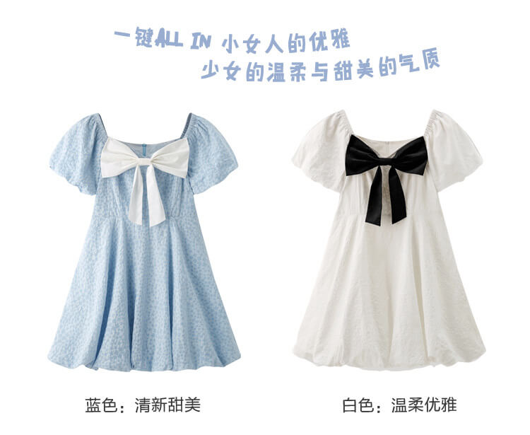 半小時前氣質水冰月連衣裙2024新款春蝴蝶結連衣裙方領茶歇裙 - 套餐一 1入-NT$1099