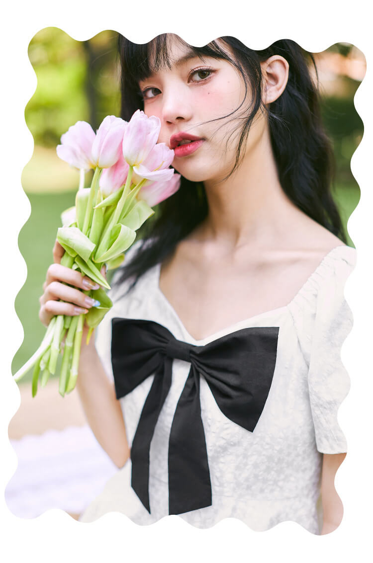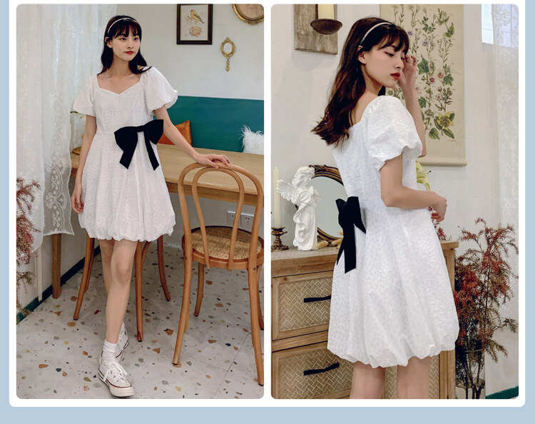 5分鐘前氣質水冰月連衣裙2024新款春蝴蝶結連衣裙方領茶歇裙 - 套餐二 買1送1-NT$1599