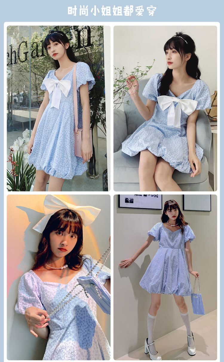 20分鐘前氣質水冰月連衣裙2024新款春蝴蝶結連衣裙方領茶歇裙 - 套餐三 買2送2-NT$2299