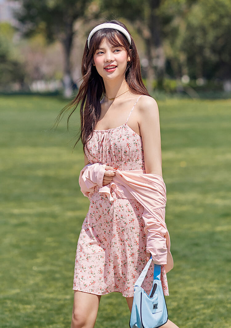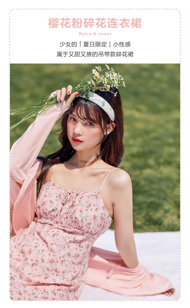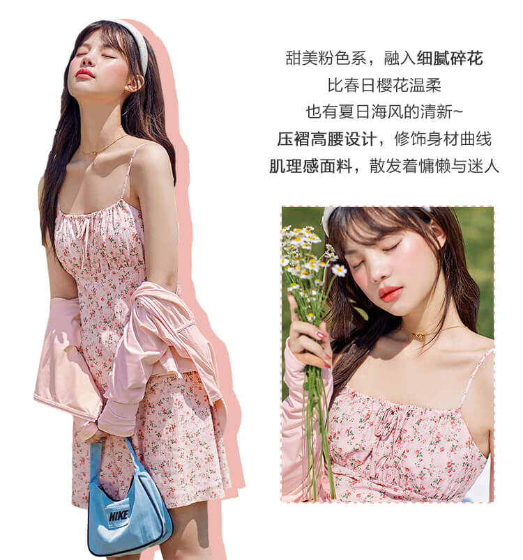 5分鐘前氣質吊帶連衣裙2024早春少女碎花吊帶修身連衣裙 - 套餐二 2件八折-NT$2078